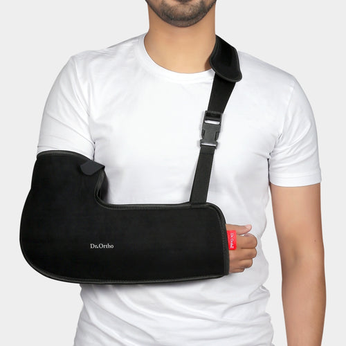 Dr. Ortho Tropical Arm Sling provides optimal support to the injured arm, shoulder, elbow, and wrist during rehabilitation. Its ergonomic and sleek design offers enhanced comfort and better airflow, making it ideal for tropical (hot and humid) environments. By providing stability to the injured area, it aids in a quick recovery. Its adjustable strap provides a custom fit and keeps the arm at a 90-degree angle for optimal comfort. It also features a cushioned shoulder pad that helps prevent pinching caused by arm’s weight.